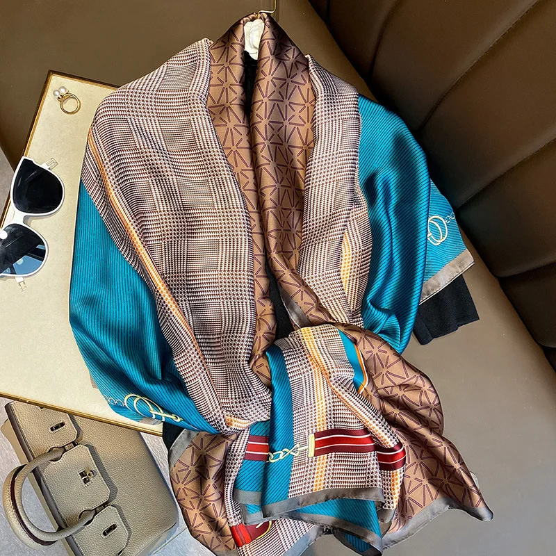 Платок Шелковый женский, мягкий, классический, винтажный, накидка для пляжа