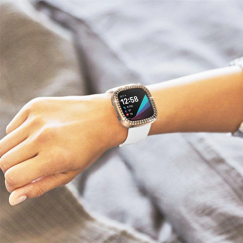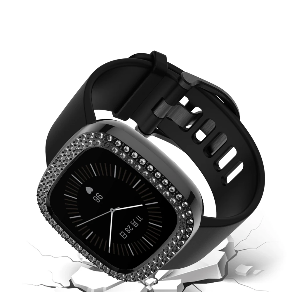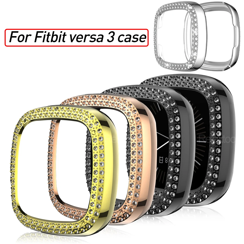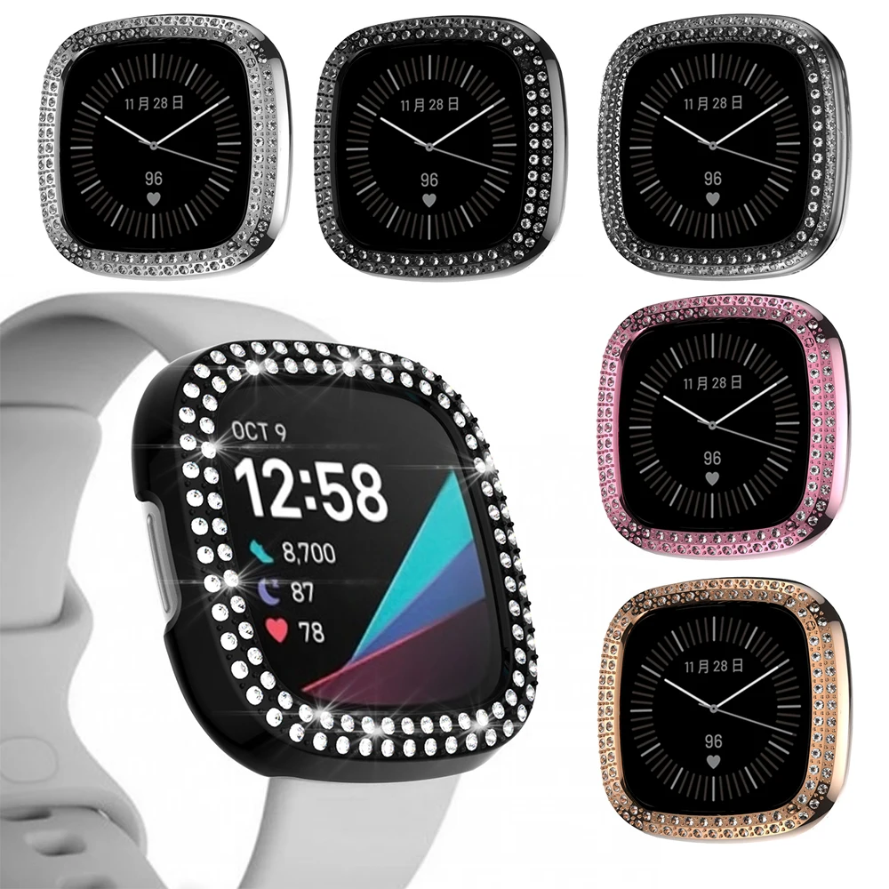 Блестящий двухрядный Алмазный защитный чехол для экрана часов, Модный чехол-бампер из поликарбоната для Fitbit SenseVersa 3