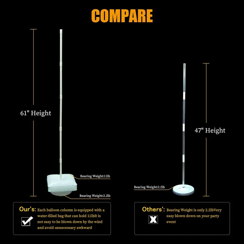 Хорошо спроектированная сетчатая основа и сумка для воды, стабильная труба из ПВХ. Он не будет резко трясти из-за ветра или столкновения объекта. Воздушный шар-это сложенный интегральный аксессуар, с одной длиной 17 дюймов, высокопрочный черный Стекловолоконный полюс, изгиб нелегко сломать, вы можете повторно использовать его в любом месте.