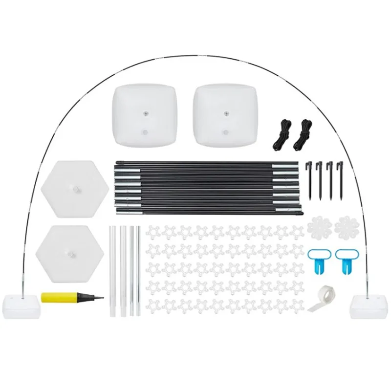 Воздушный шар арочный комплект посылка B Включает в себя 15 сложенных стекловолоконных полюсов, 2 ПВХ базы, 2 Стальные длинные трубы, 2 воды (песок) Наполнитель мешок, 1 ручной насос, 50 шаровых зажимов, 2 шаровых зажима, 1 рулон ленты, 1 рулон ленты
