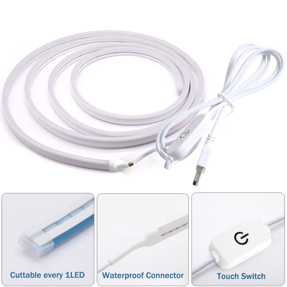 Светодиодная лента USB с сенсорным диммером, 5 в постоянного тока, гибкая неоновая вывеска, водонепроницаемая светодиодная лента, неосветильник свет, веревка, светильник Светка