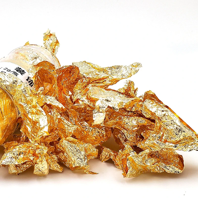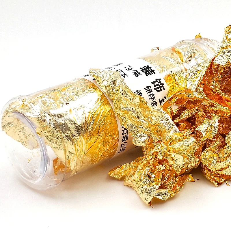 Золотая фольга, 2 г, фотолисты для украшения тортов, стейков, настоящая Золотая бумага, золотые хлопья, для приготовления пищи, десертов, золотых листьев
