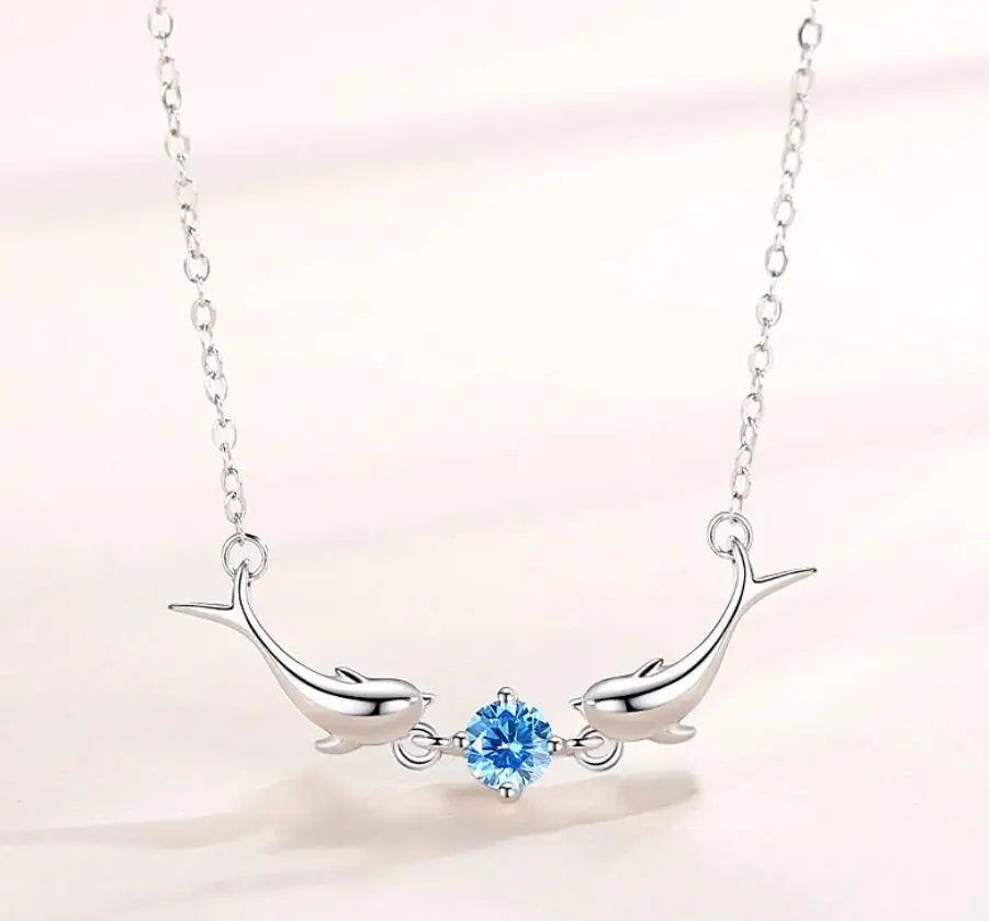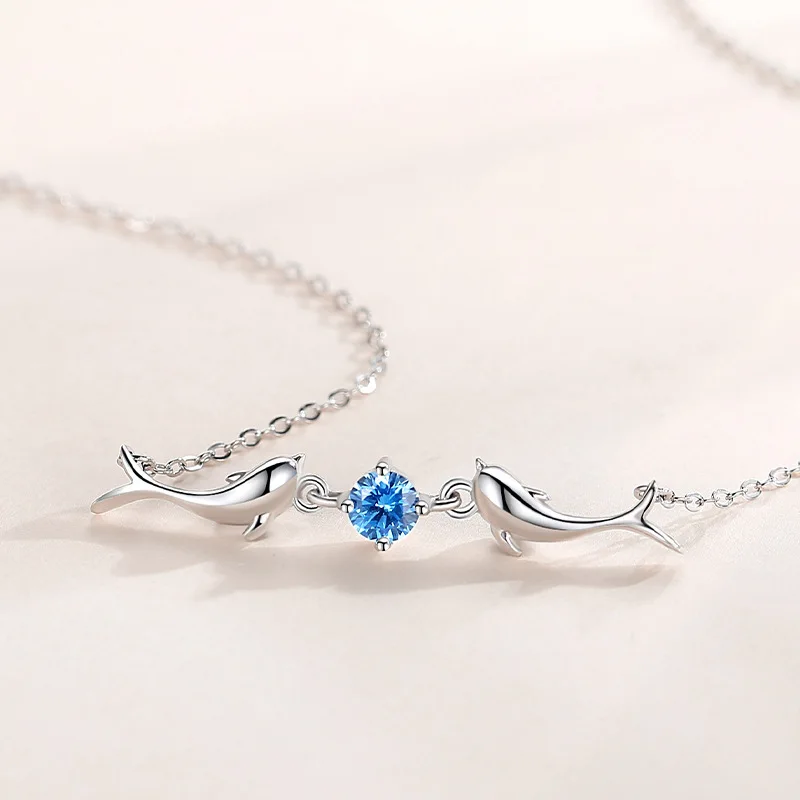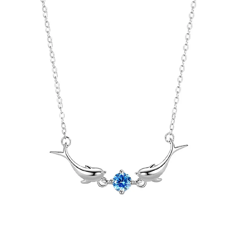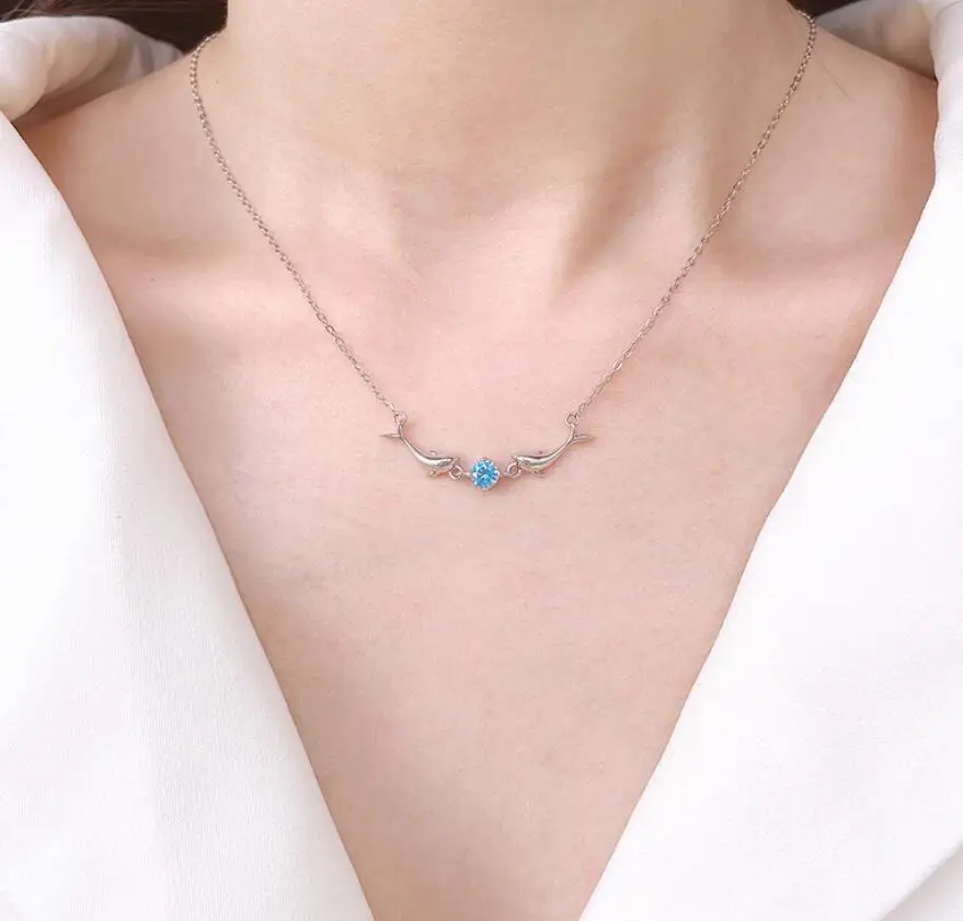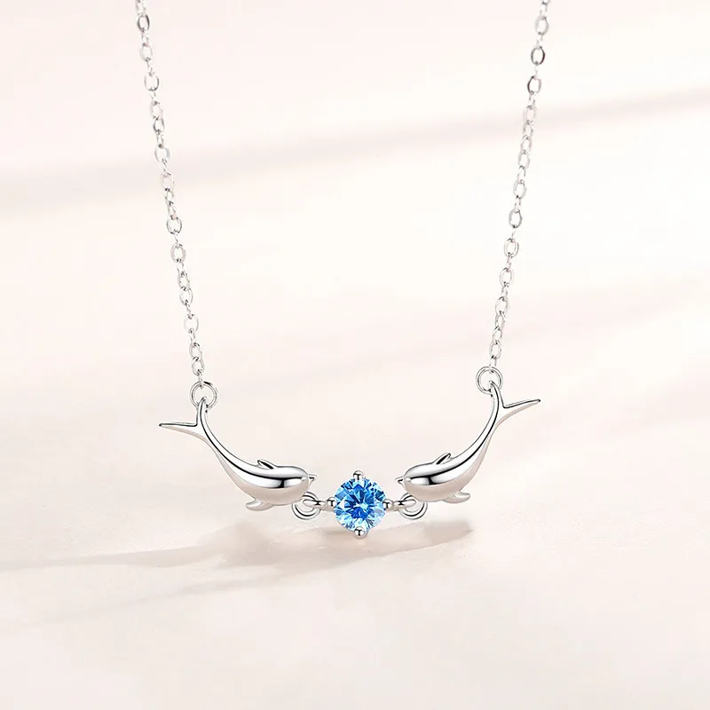 Подвеска из серебра 925 пробы с голубым цирконием Дельфин ожерелья, подвесы, чокеры, эффектные ювелирные изделия для женщин, подарок для свадебной вечеринки