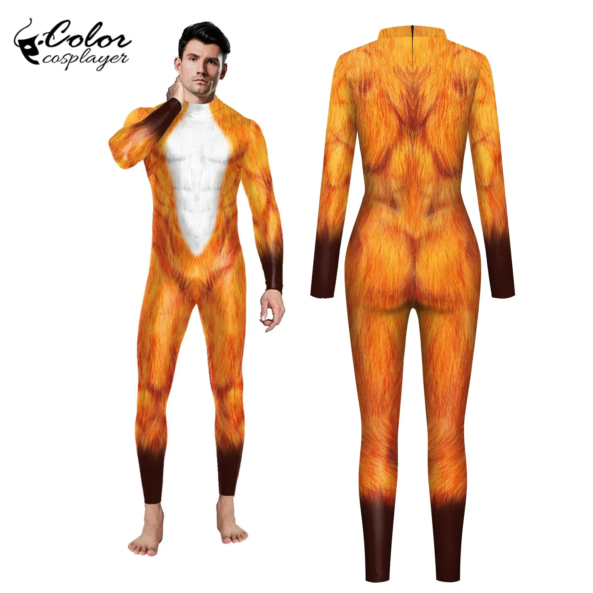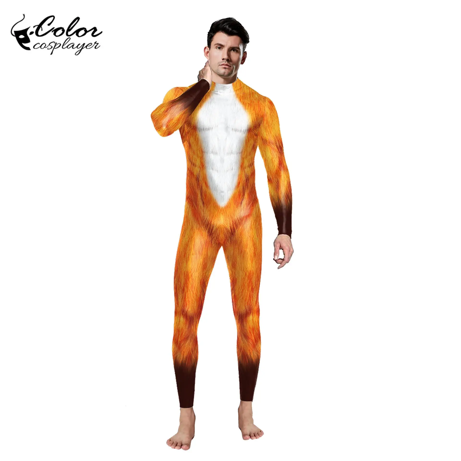 Модные карнавальные костюмы с животными для вечеринки, Мужское боди для косплея мышц, комбинезоны с 3D Цифровым принтом Зентаи лисы, мужские костюмы