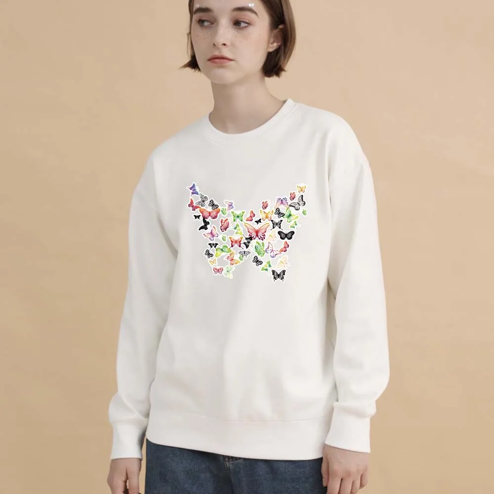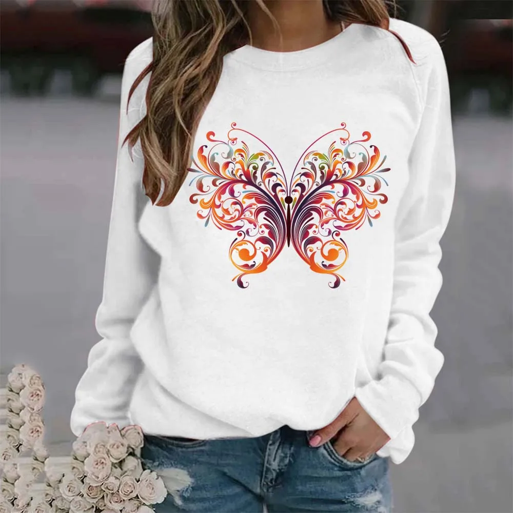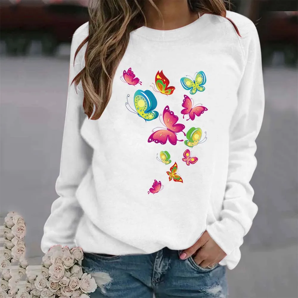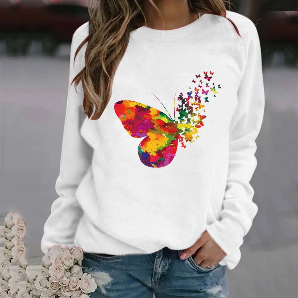 Женский свободный свитер с круглым вырезом и принтом бабочек, пуловер оверсайз в стиле Харадзюку, спортивный топ с длинными рукавами для студентов на весну и осень