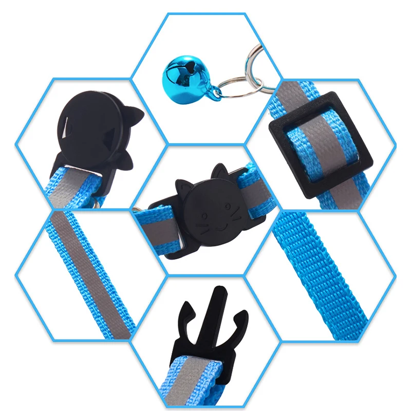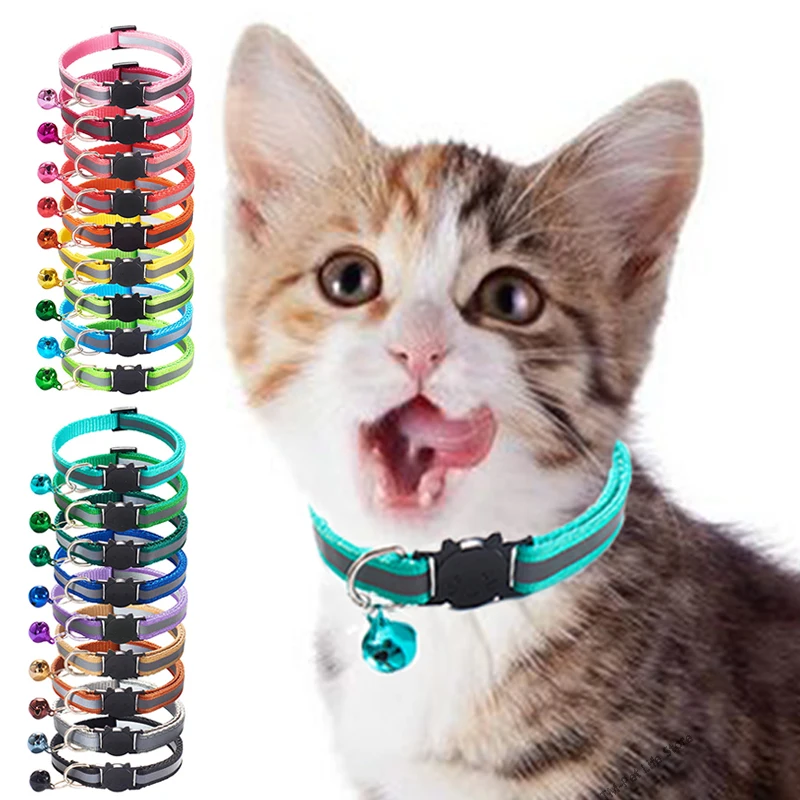 Ошейник для домашних животных с мультяшным рисунком, ошейник для кошек и собак с колокольчиком, Регулируемая пряжка для головы кота из полиэстера, Светоотражающий ошейник, маленький цвет