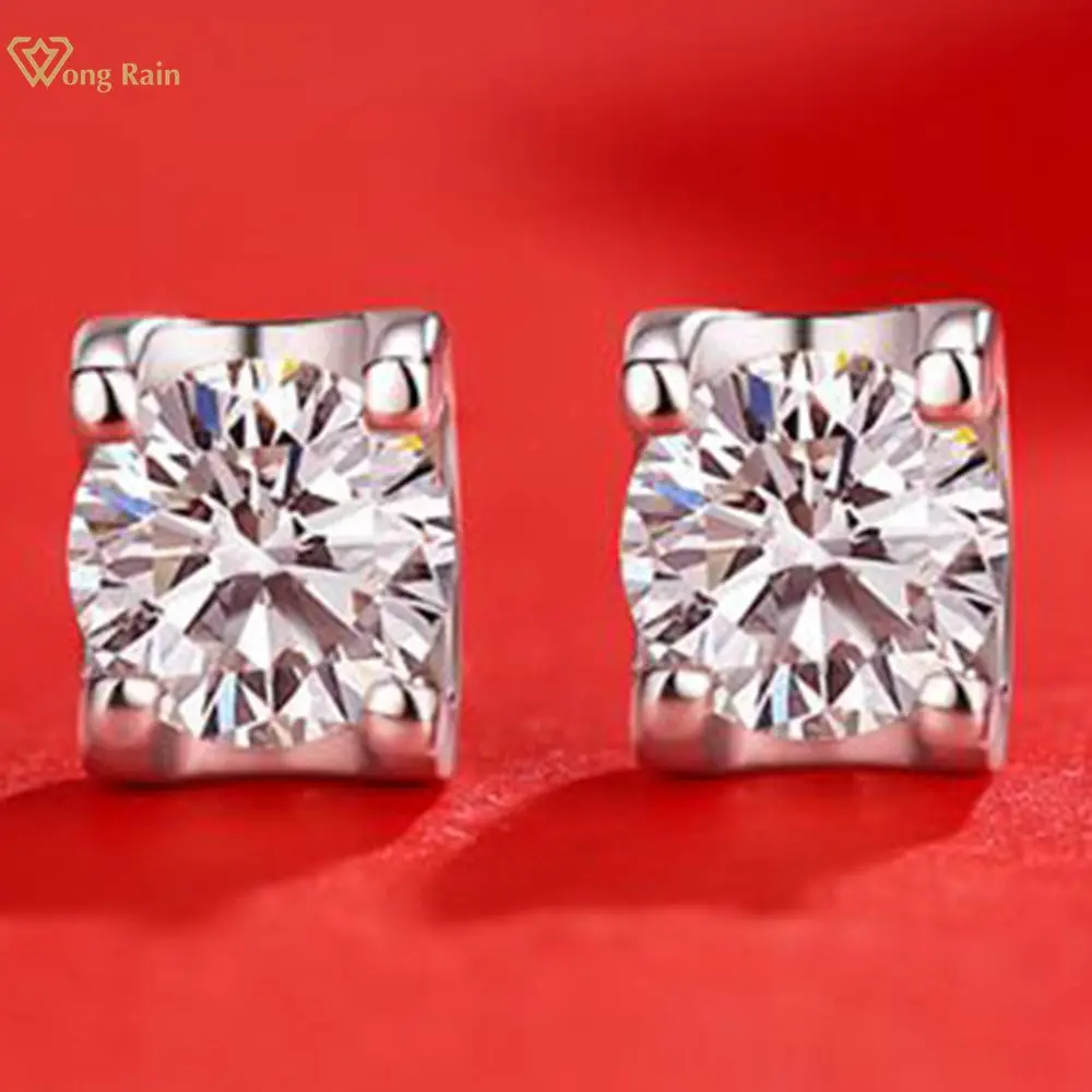 Вонг дождь 925 пробы серебро VVS1 D Цвет круглой огранки настоящий Муассанит драгоценными камнями бриллиантами серьги штифты серьги ювелирные украшения с Гра