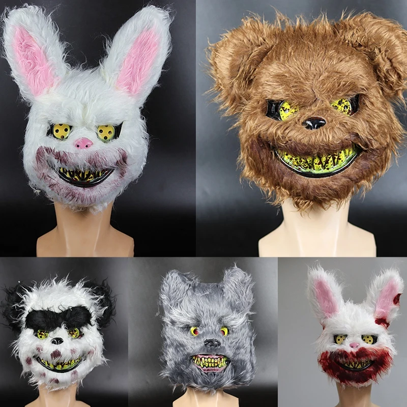 Маска на Хэллоуин, белый кролик, кровавый Жуткий Ужас на Хэллоуин, страшная маска для взрослых