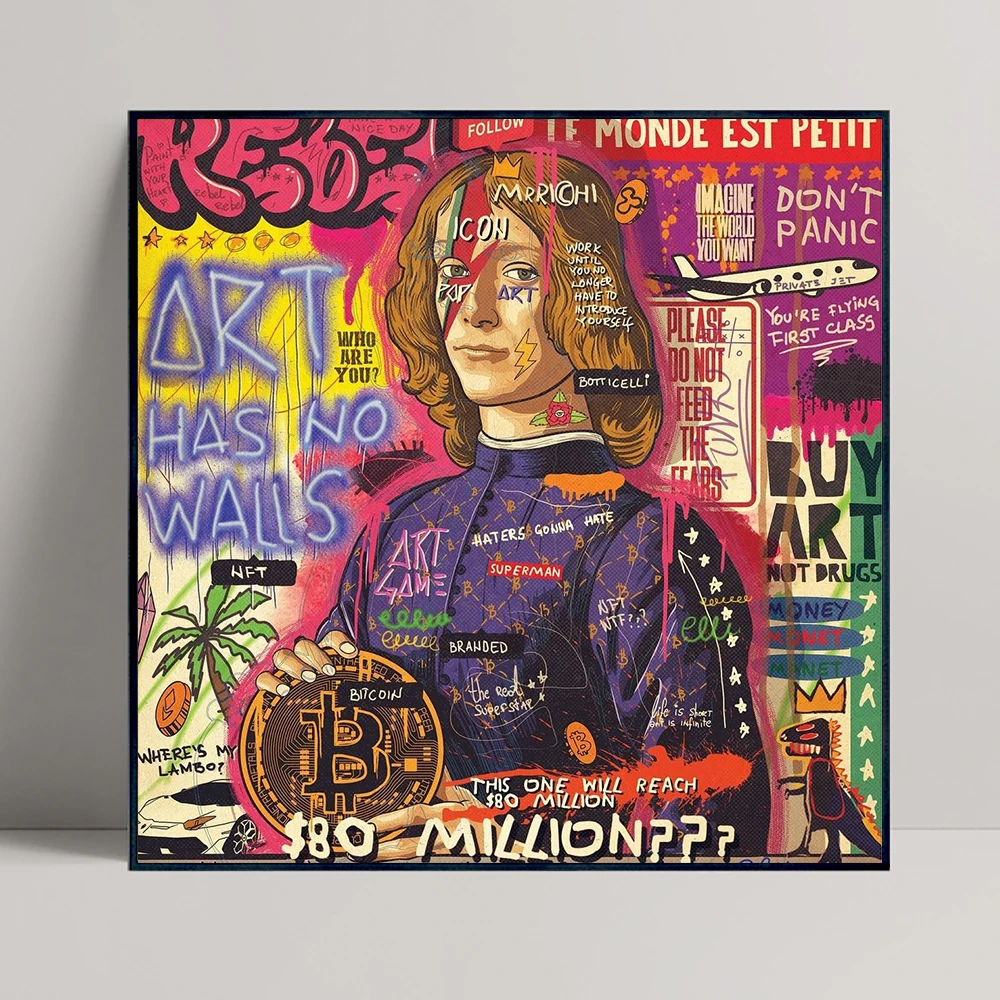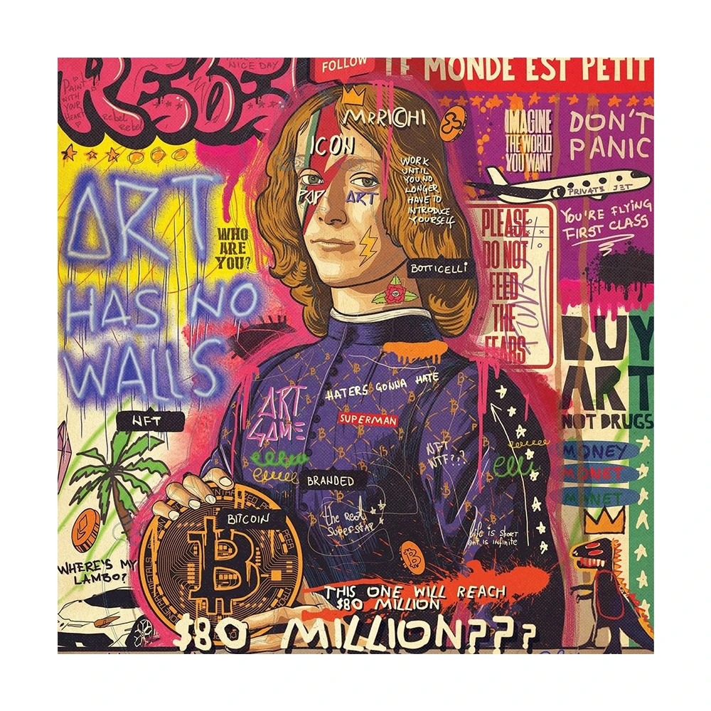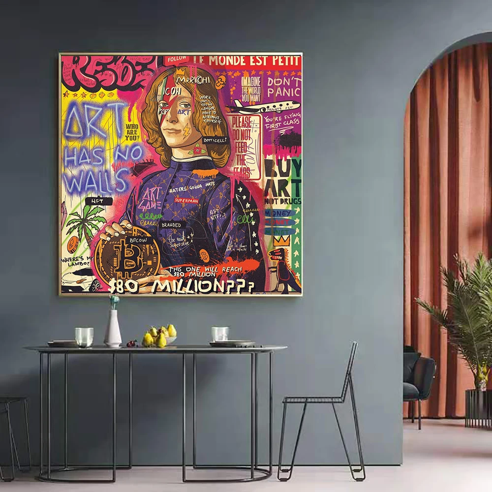 Знаменитая картина Молодой человек, Биткоин, граффити, поп-арт, живопись, печать на холсте, Настенная картина для гостиной, домашний декор