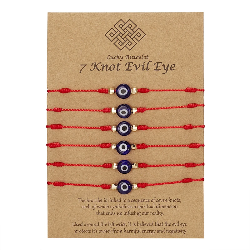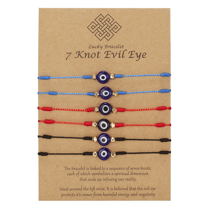 6 шт.компл. браслет Турецкий голубой глаз для женщин и мужчин, плетеная веревочная цепочка ручной работы с кристаллами, фотоподарок, оптовая продажа