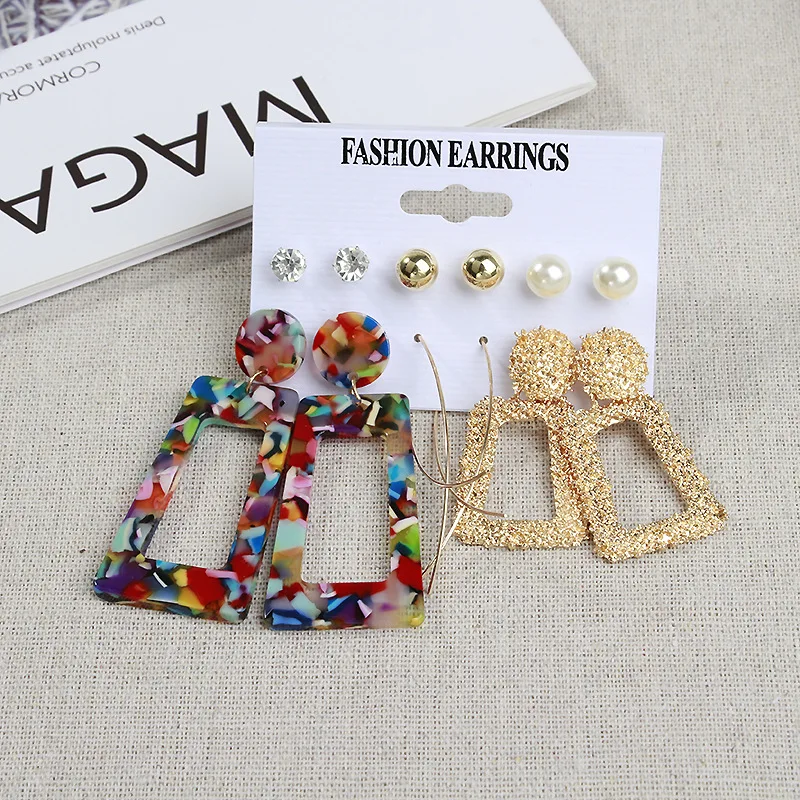 Женские модные серьги, популярные серьги в комплекте, геометрические металлические акриловые серьги с кисточками, набор украшений