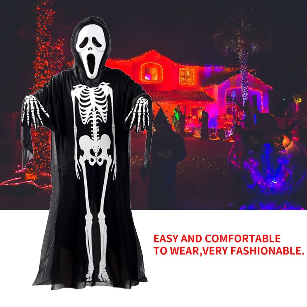 Этот товар представляет собой набор инновационных и крутых маскарадных реквизитов для Хэллоуина, в комплект входят: одна одежда с изображением скелета черепа и одна маска с изображением Призрака и пара перчаток, И подходит как для взрослых мужчин, так и для женщин, идеально подходит для пугающих ваших гостей на костюме, Или просто Устройте взрыв, оставаясь дома, пугая все эти трюки или лечения в ночь Хэллоуина.