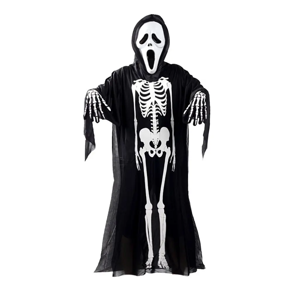 Костюм для костюмированной вечеринки с изображением черепа, скелета, призрака, для взрослых, детей, на Хэллоуин, карнавал, маскарад, нарядное платье, одежда + маска дьявола с черепом + перчатки