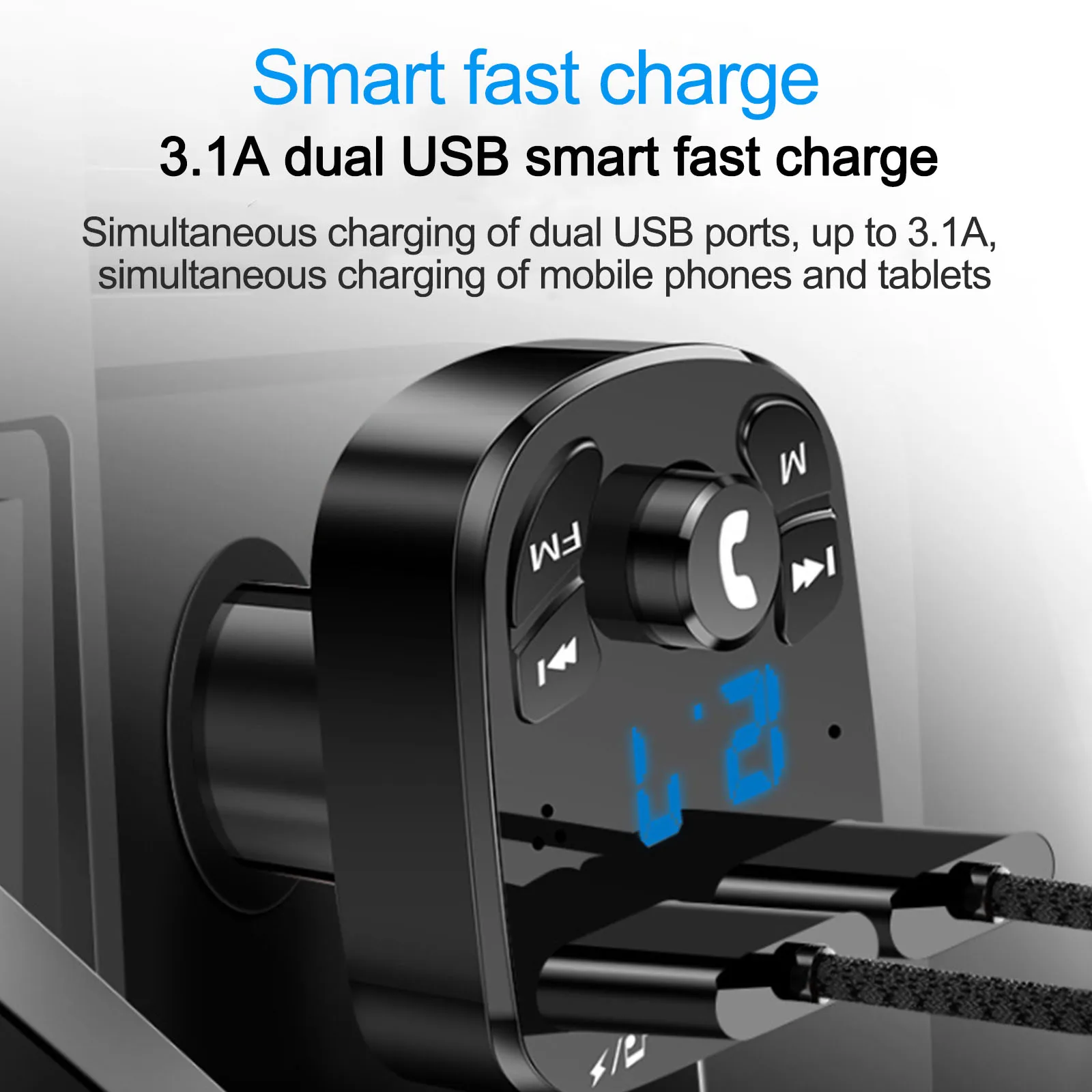 Автомобильный Bluetooth-совместимый FM-передатчик, автомобильный проигрыватель, беспроводной громкой связи, аудиоприемник с USB, быстрое зарядное устройство, автомобильные аксессуары