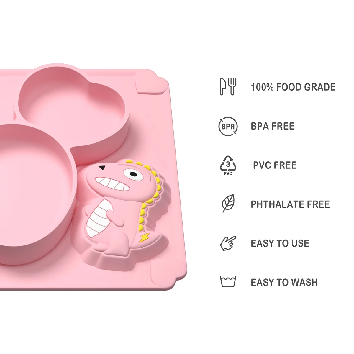 1. 100% пищевой силикон, нетоксичный, без BPA, свинца, кадмия, фталатов, ПВХ и латекса