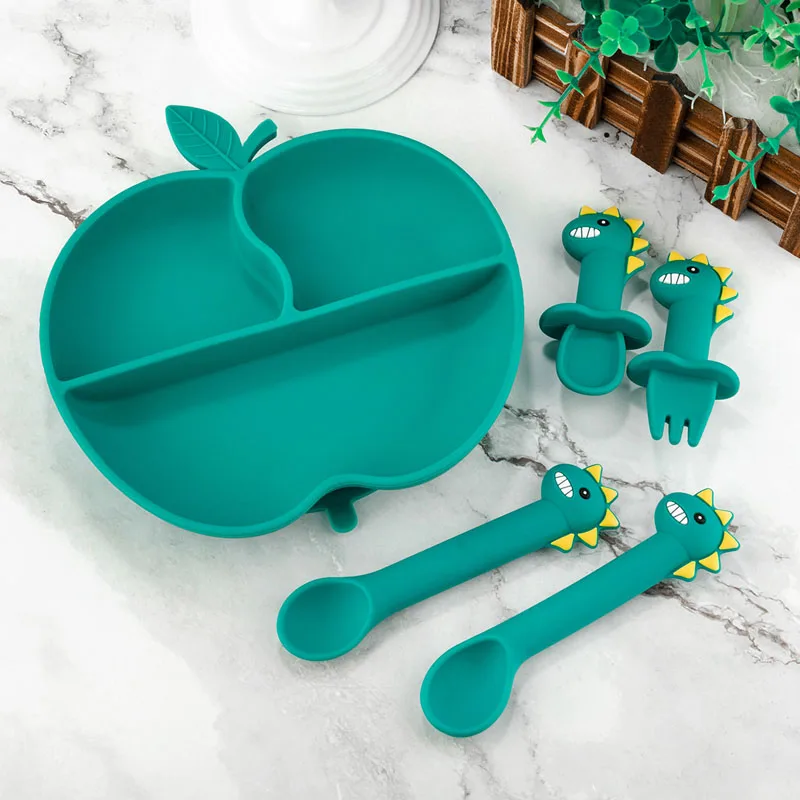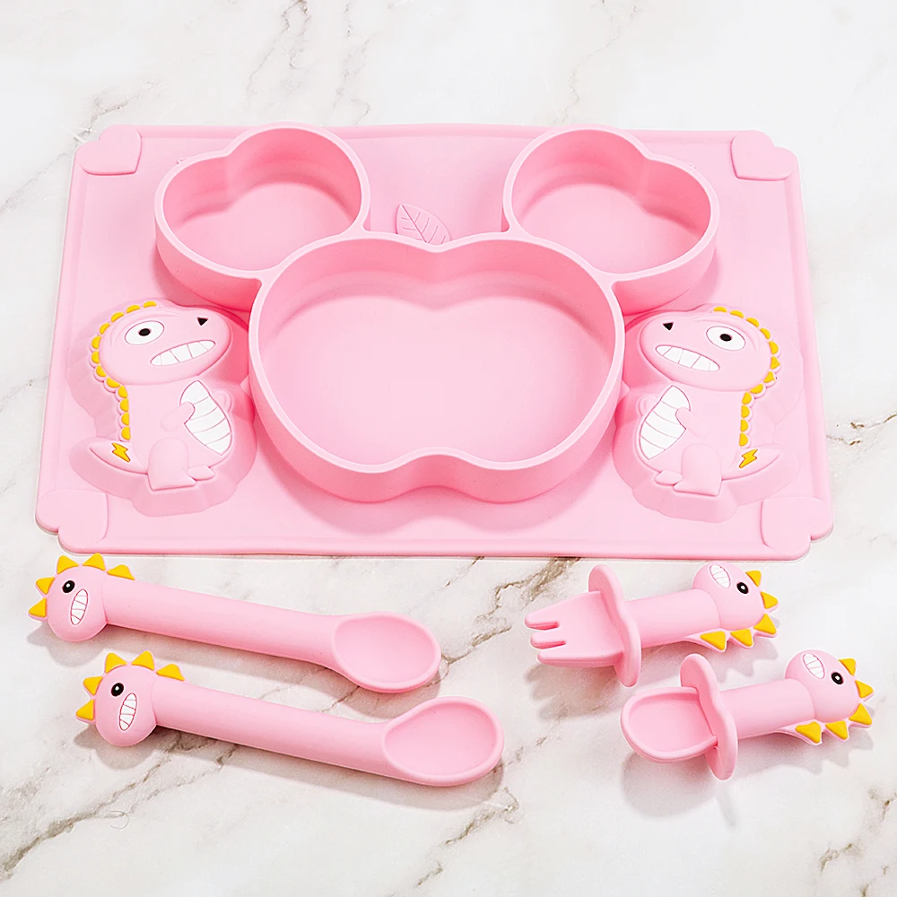 Детские Силиконовые Обучающие тарелки динозавр мультфильм мягкая ложка для кормления посуда набор детской посуды