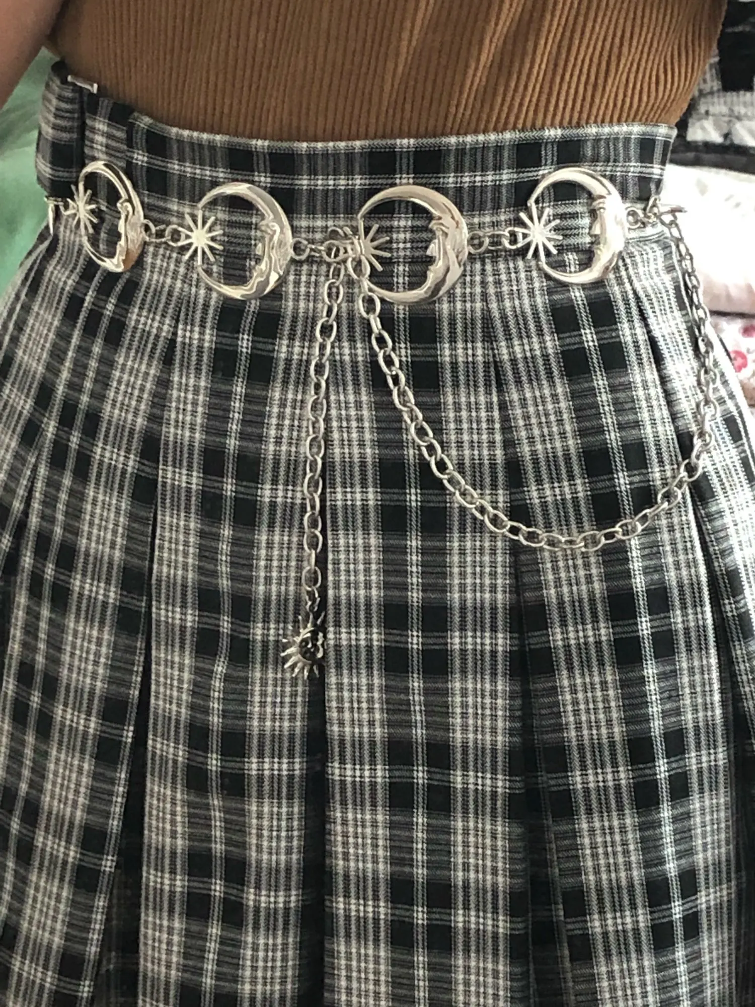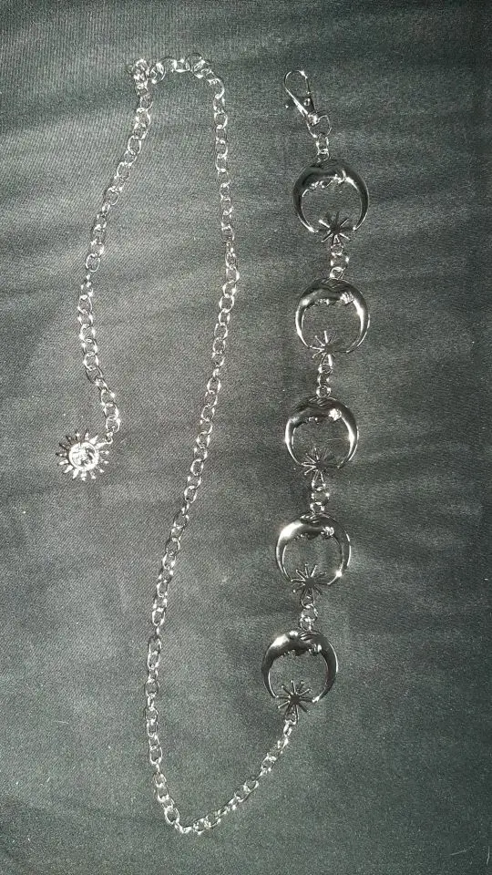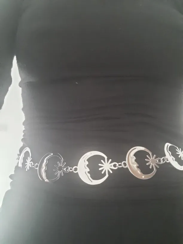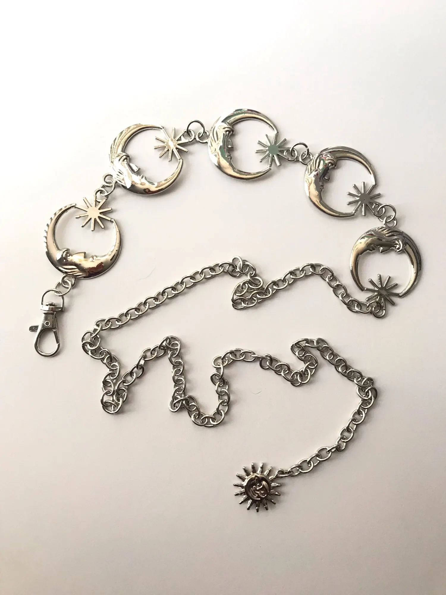 Ремень в стиле Харадзюку Женский, металлический винтажный пояс в стиле панклуна, с цепочкой на высокую талию, готический серебристый пояс с подвеской в виде Луны и солнца