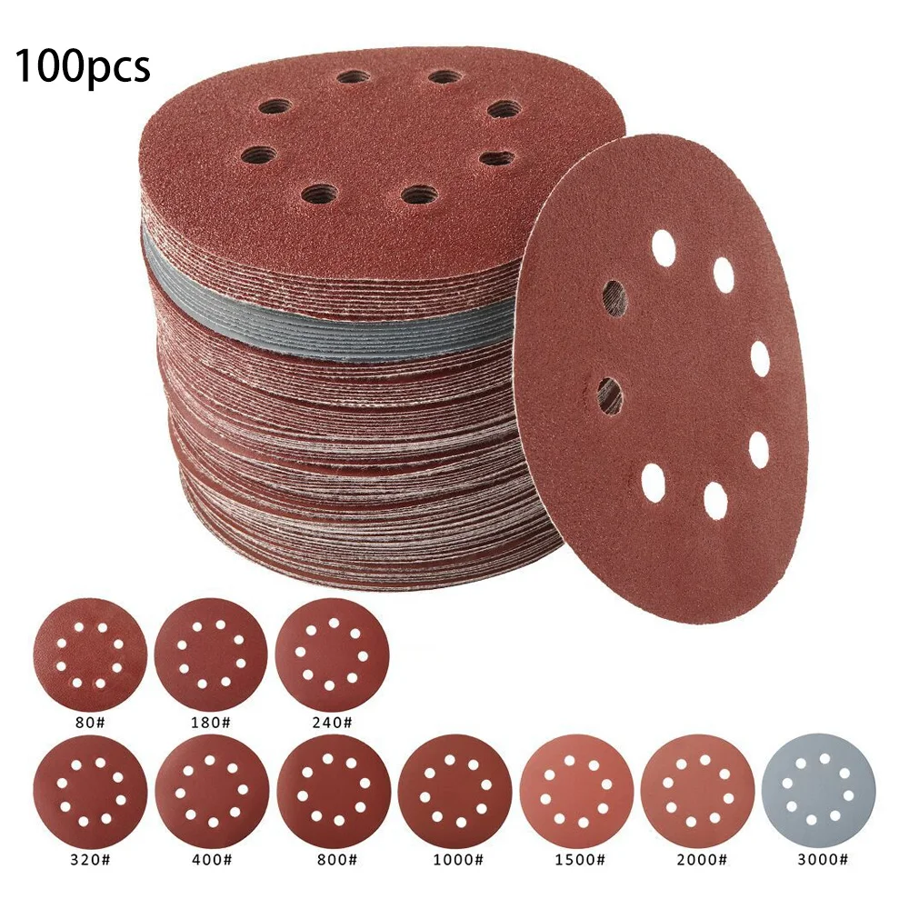 100 шт., Набор круглых шлифовальных дисков, 5 дюймов, 125 мм, 80-3000 дюйма