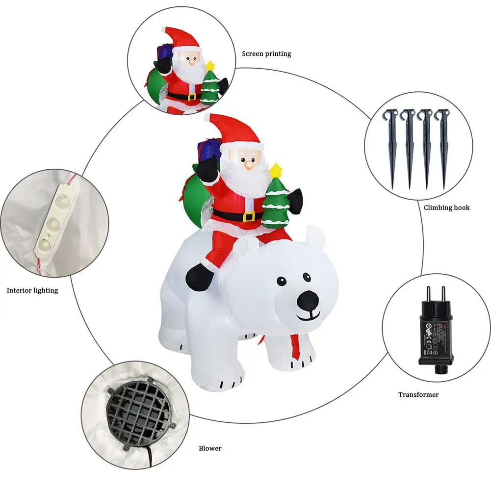 Гигантский надувной Санта-Клаус для езды на Полярном медведе, Рождественская надувная кукла с вращающейся головой, рождественские украшения для дома, 5,6 фута