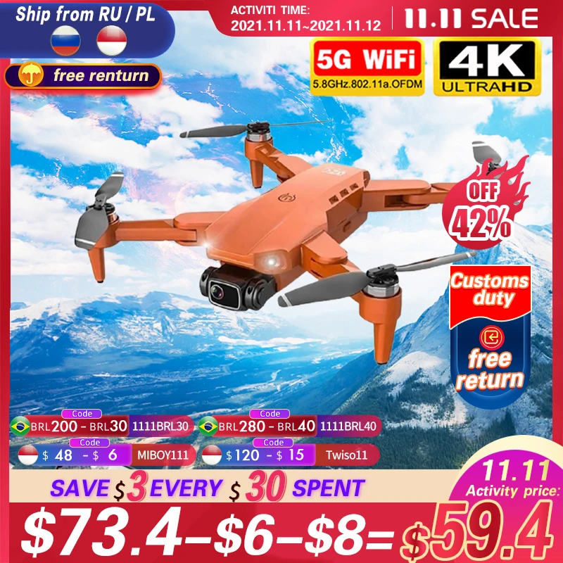 Квадрокоптер L900 Pro складной с Gps и двойной камерой 4k Hd