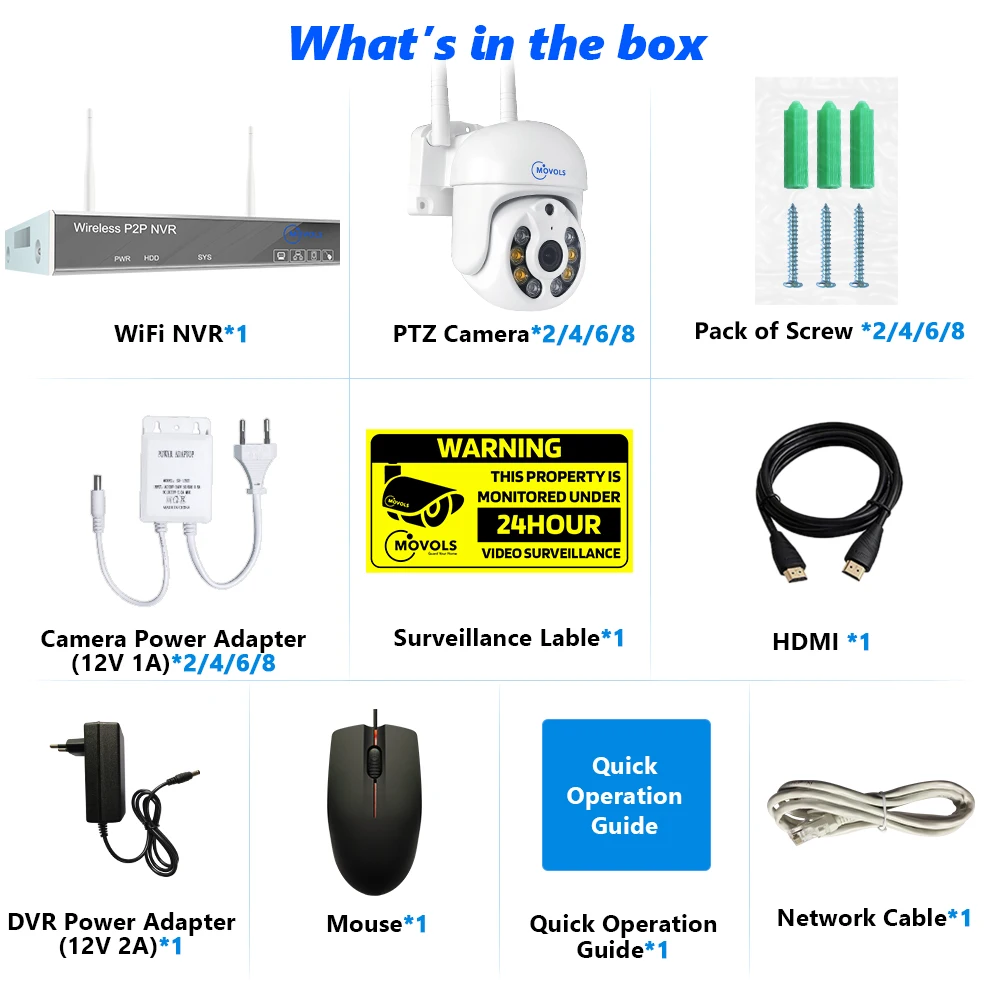 Беспроводная система видеонаблюдения Movols, H.265, 3 Мп, HD, двустороннее аудио, Водонепроницаемая PTZ, Wi-Fi IP-камера безопасности, 8 каналов, P2P NVR, комплект видеонаблюдения