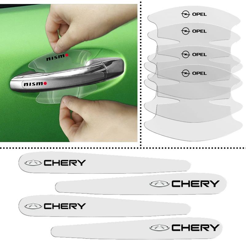 8 шт., прозрачные наклейки на дверные ручки автомобиля Chery A3, A5...