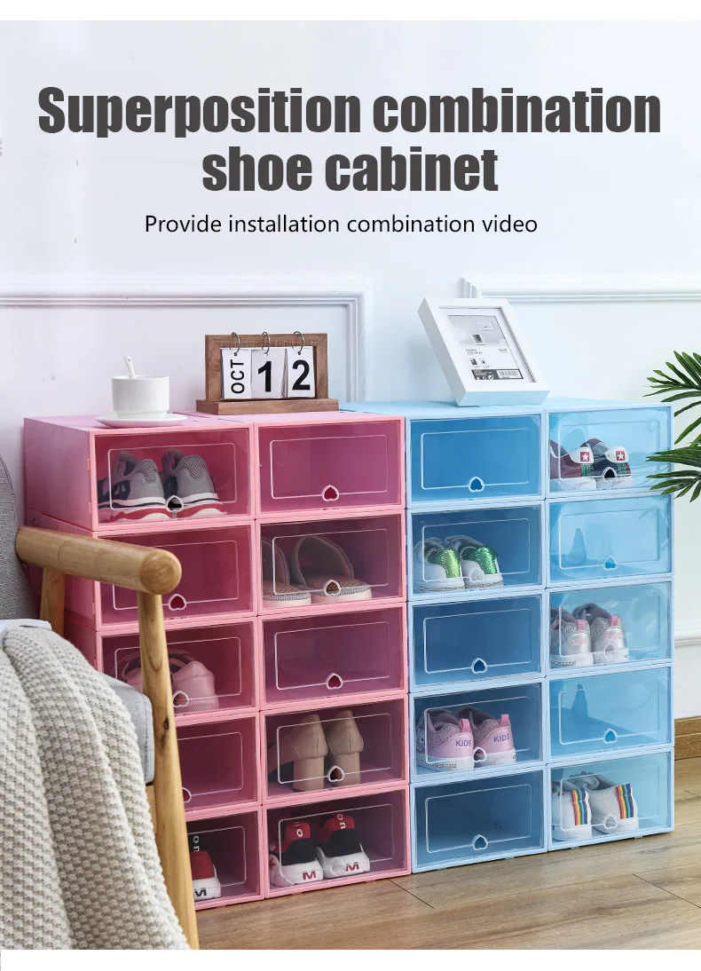 Прозрачная коробка для обуви, пластиковый складной органайзер для обуви, 6 упаковок