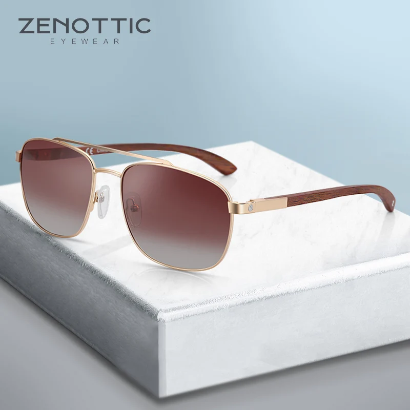 ZENOTTIC деревянные поляризационные солнцезащитные очки для мужчин, роскошные брендовые дизайнерские солнцезащитные очки с двойным мостом, антибликовые очки UV400