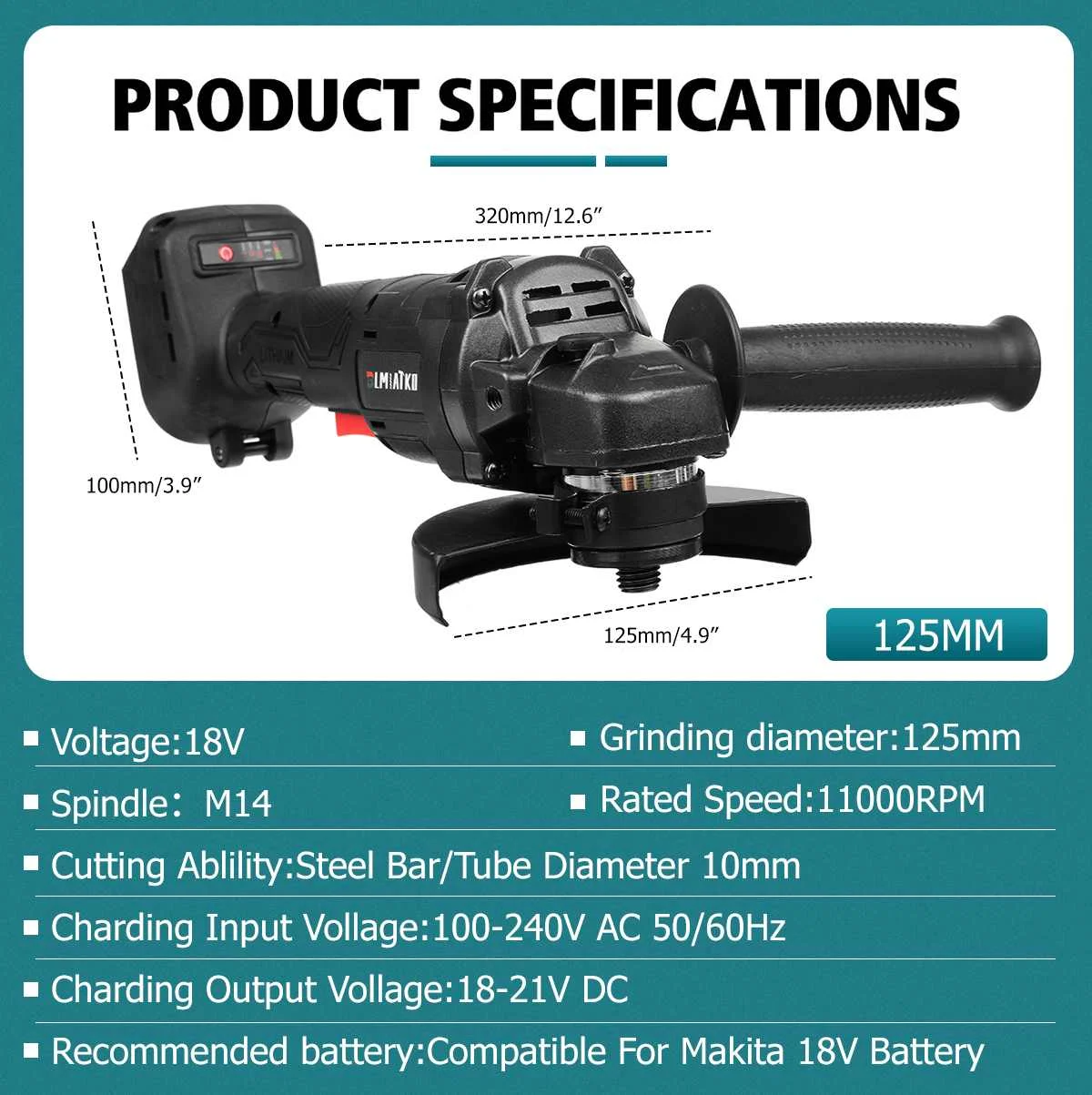125 мм бесщеточная беспроводная ударная угловая шлифовальная машина с переменной скоростью, режущая машина для Makita с батареей 18 в