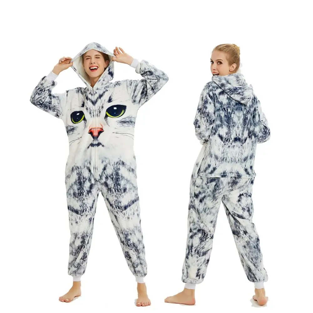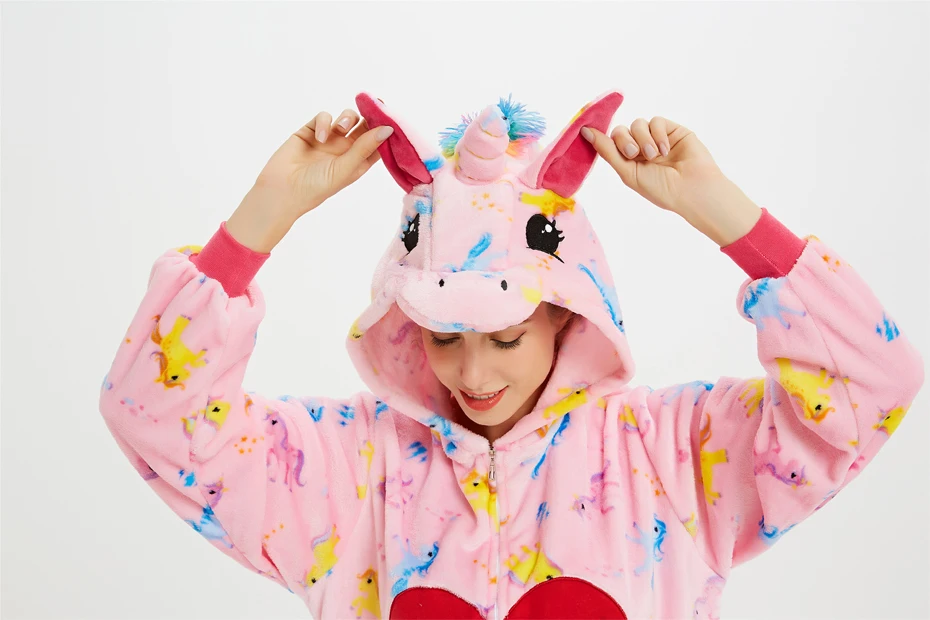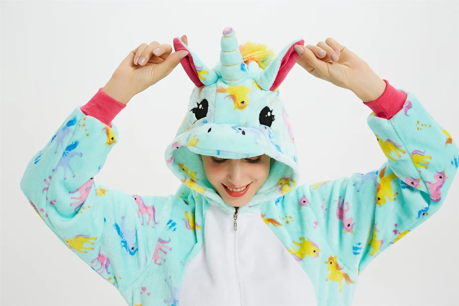 Пижама-комбинезон в виде животных для взрослых, одежда для сна, женский зимний костюм-комбинезон в стиле унисекс, Фланелевая Пижама-комбинезон с мультяшным единорогом