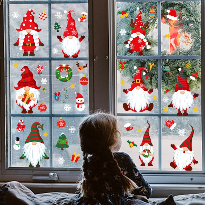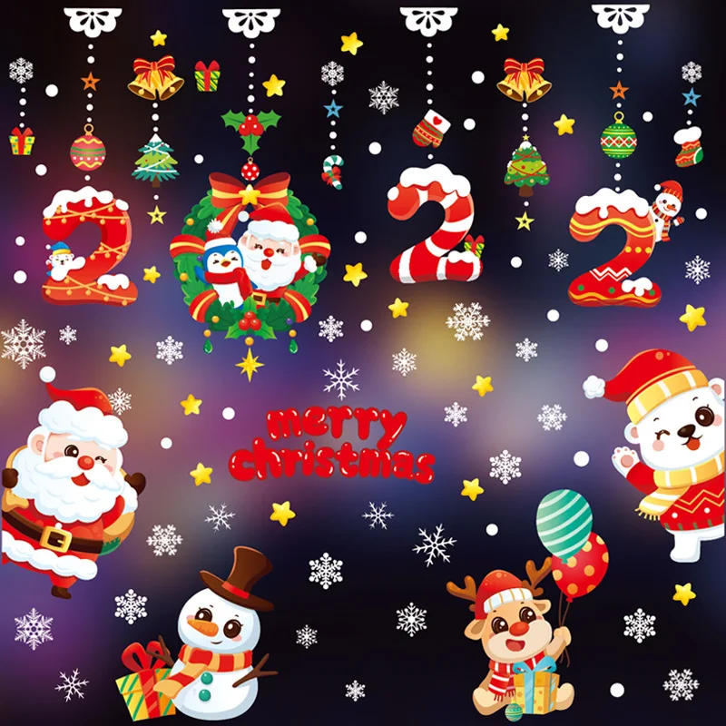 новый год 2022,новогодние украшения 2022,наклейки на стену,Фотообои, Рождественское украшение, 2021 г., домашний декор, двухсторонний узор, оконные наклейки, зеркальные настенные наклейки