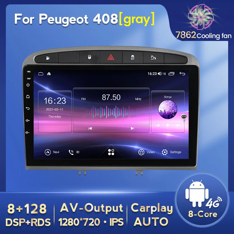 Автомагнитола на Android 11 с GPS-навигацией, мультимедийный плеер для PEUGEOT 308 308S 408 2010 - 2016 с 8 Гб + 128 ГБ 1280*720 IPS экраном