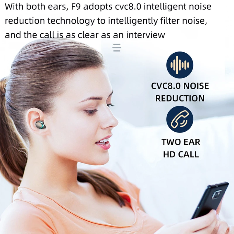 Наушники-вкладыши TWS с F9 наушники Bluetooth 5,0 Беспроводной науш...