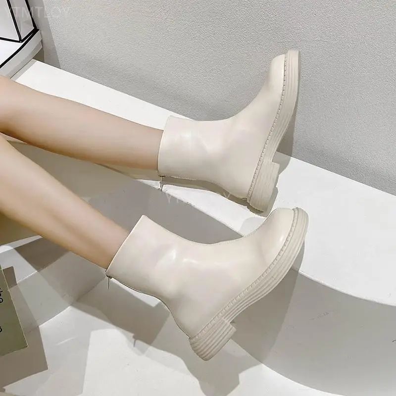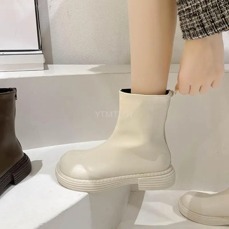 Женские ботинки на молнии, женская обувь с круглым носком, роскошны...