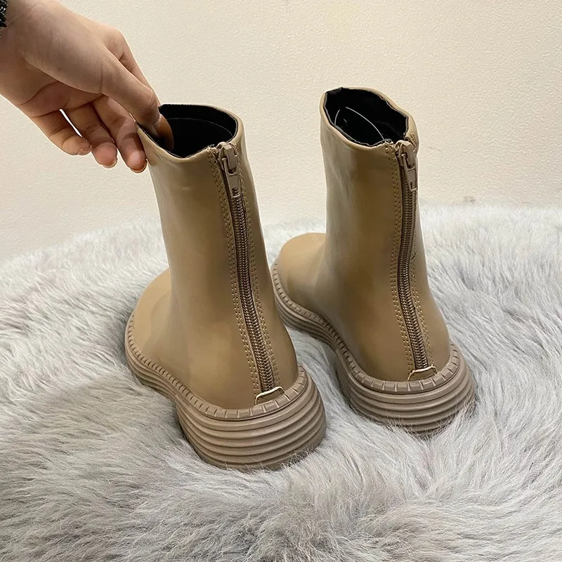 Женские кожаные ботинки челси на молнии, с круглым носком