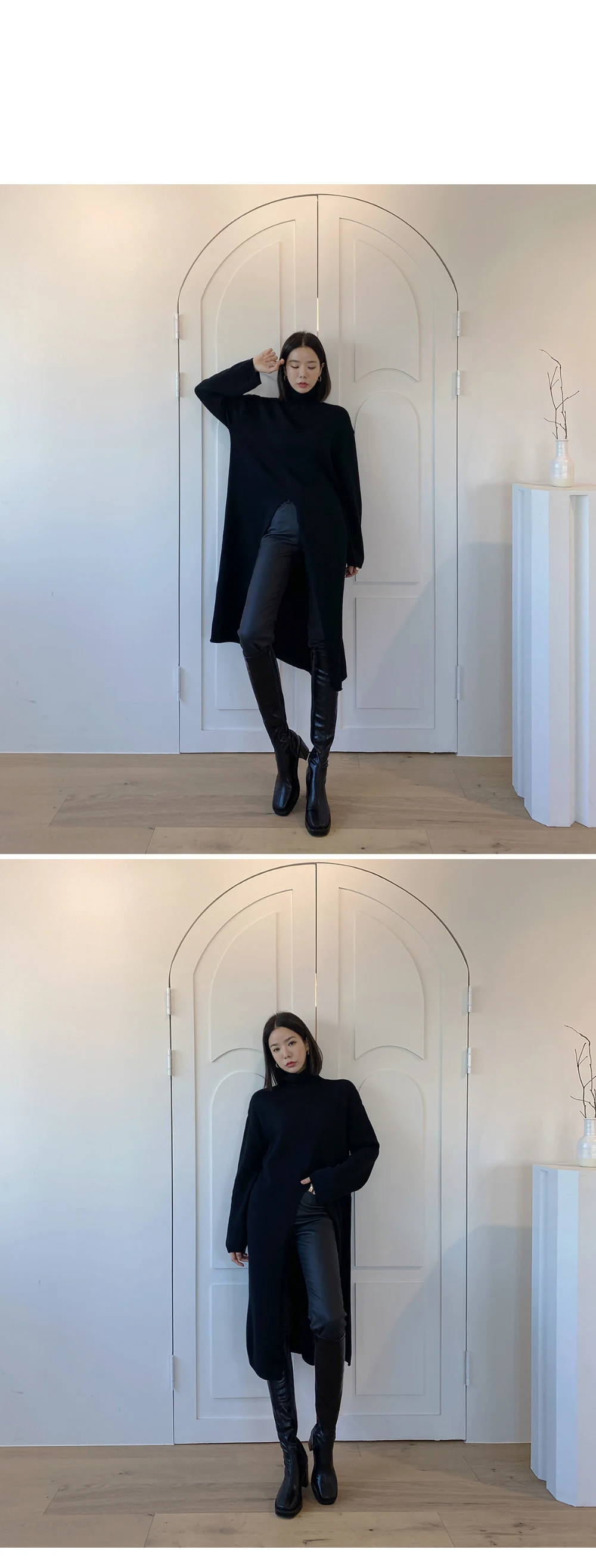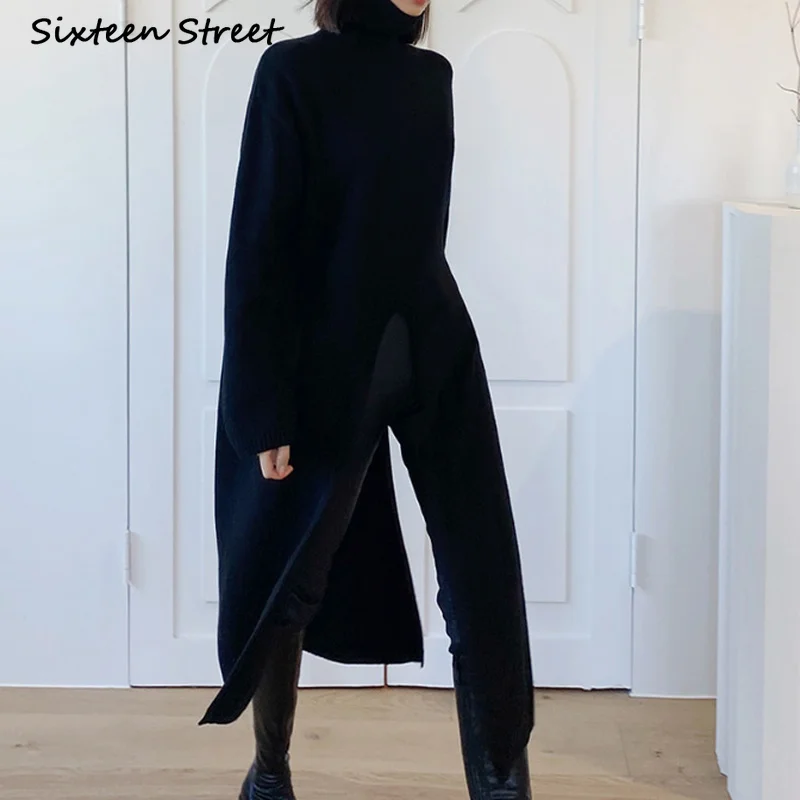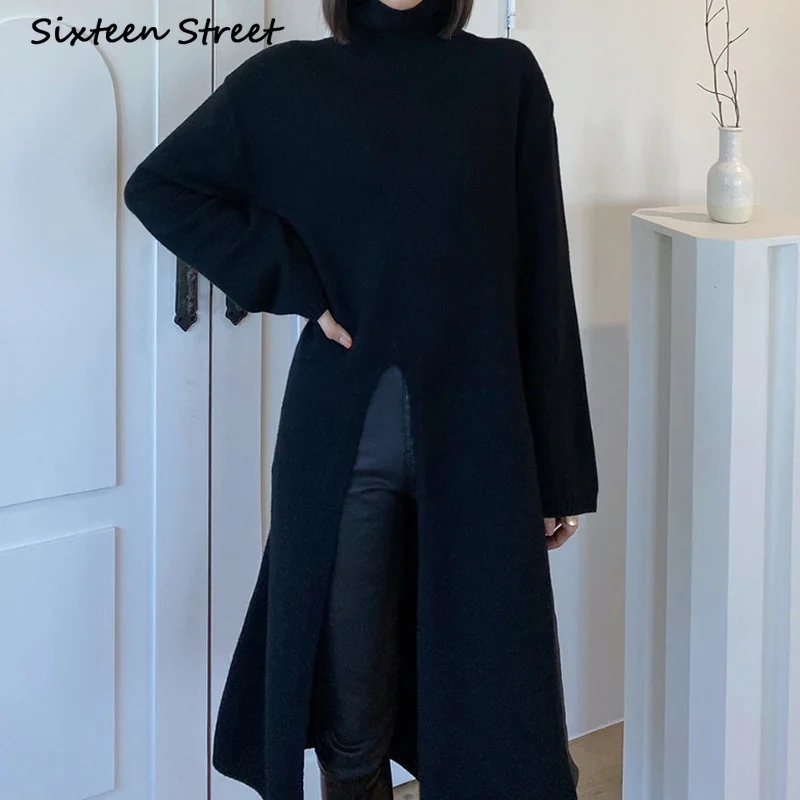 Женское платье-свитер с высоким воротником, свободное шерстяное платье макси в винтажном стиле, Y2k