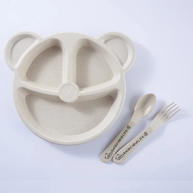 3 шт.компл. детская миска + ложка + вилка, столовая посуда для кормления, детская посуда с мультяшным медведем, столовая посуда, антигорячая тренировочная обеденная тарелка