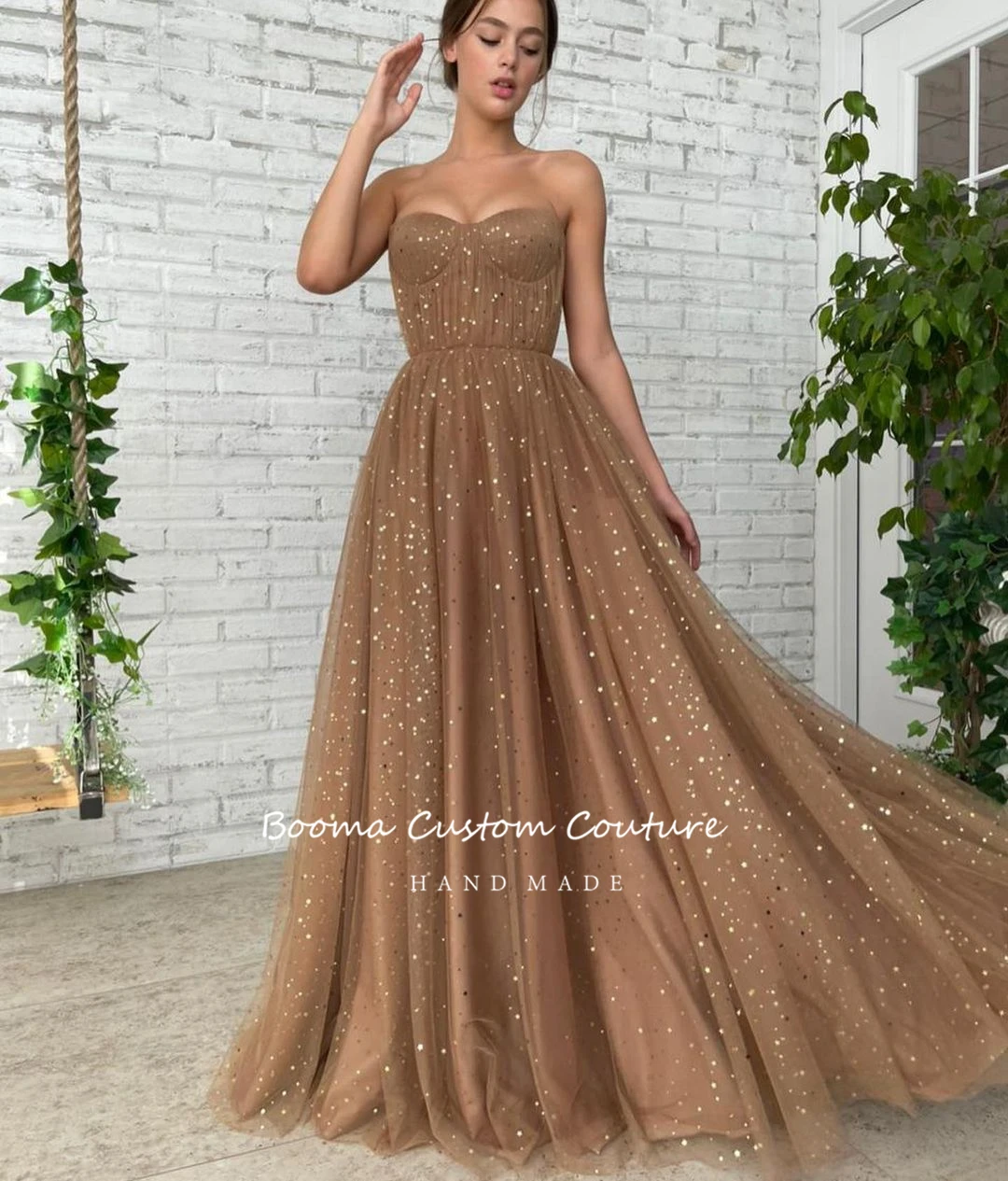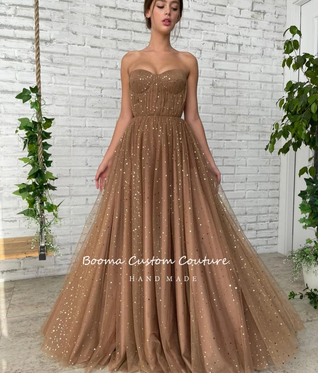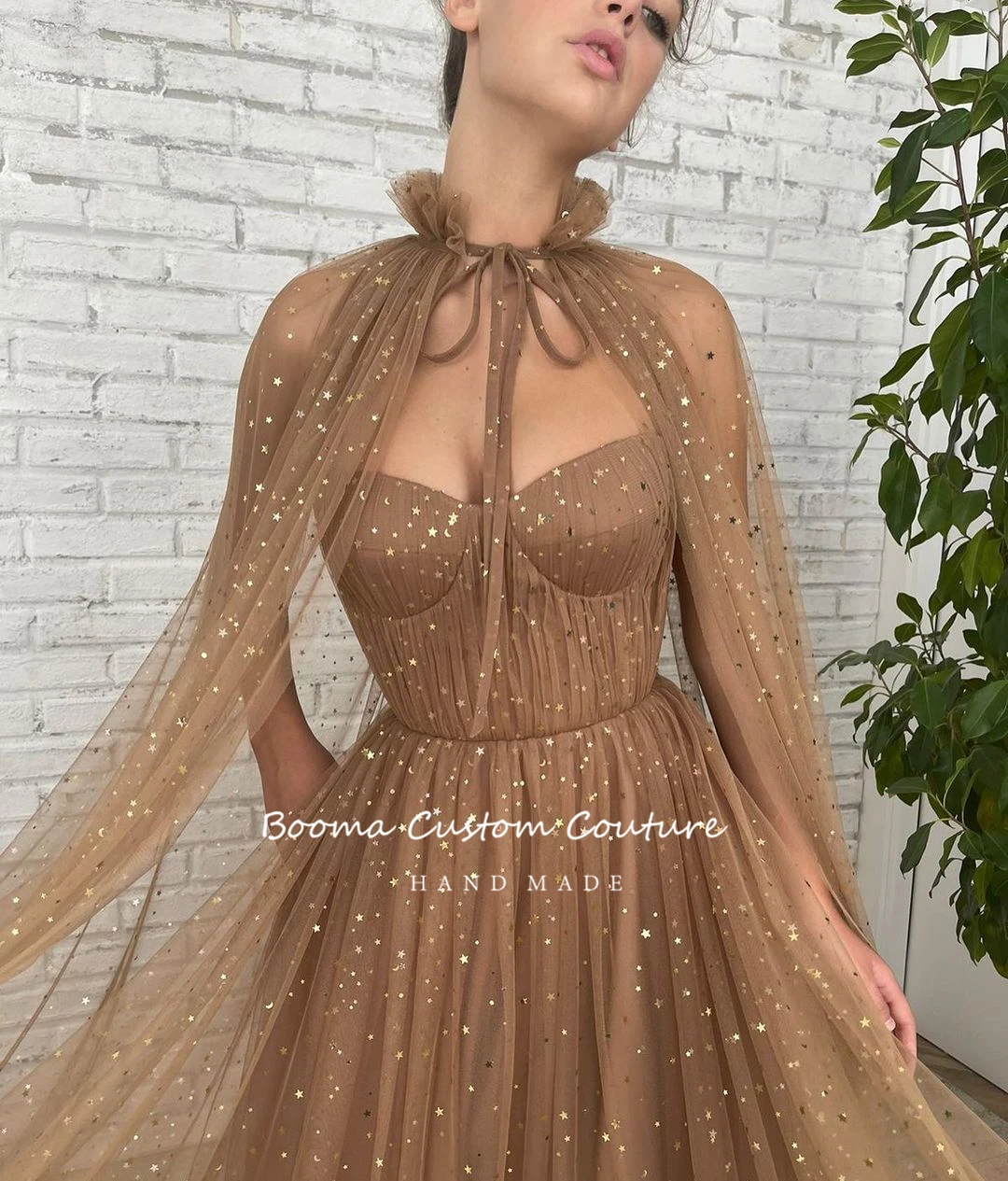 Женское вечернее платье без рукавов Booma, коричневое Тюлевое платье-трапеция с накидкой и без бретелек, длинное платье для выпускного вечера, 2021