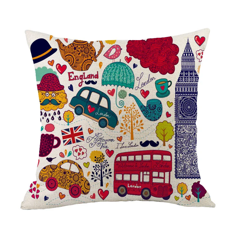 Чехол для подушки в английском лондонском стиле, льняной Хлопковый чехол для подушки в английском лондонском стиле, домашний декоративный чехол для подушки, чехол для подушки kussenslop almohada