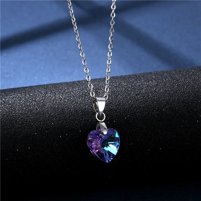 Женское колье с подвеской в виде сердца, с синим кристаллом