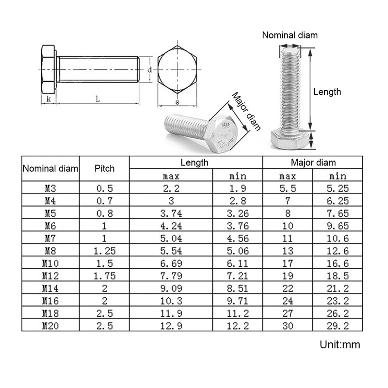 10 шт. M3 M4 M5 M6 M8 A2 304 Метрическая резьба из нержавеющей стали DIN933 стандартная Шестигранная головка Болт резьба Диаметр 3456 мм