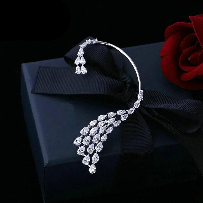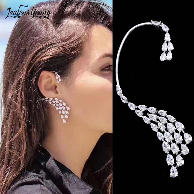 Роскошные циркониевые каплевидные ушные манжеты, женские регулируемые Асимметричные свадебные серьги, клипсы вечерние Ринок, одиночные манжеты, ювелирные изделия в подарок