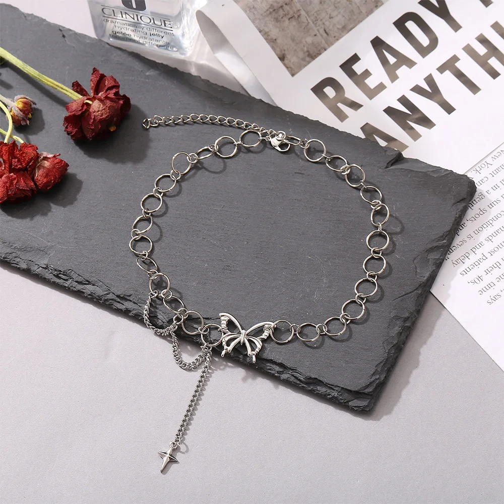 Kpop, панк стиль, Бабочка, колье, ювелирное изделие на шее, 2021, Женская цепочка на шею, кулон и ожерелье, ожерелье для девочки