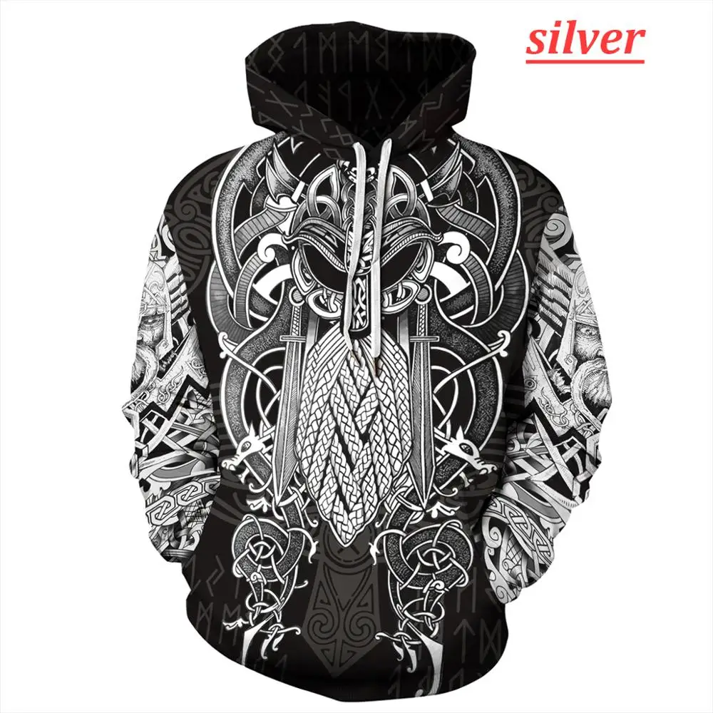 Мужская одежда 2021, толстовка с капюшоном и 3D-принтом в стиле викингов