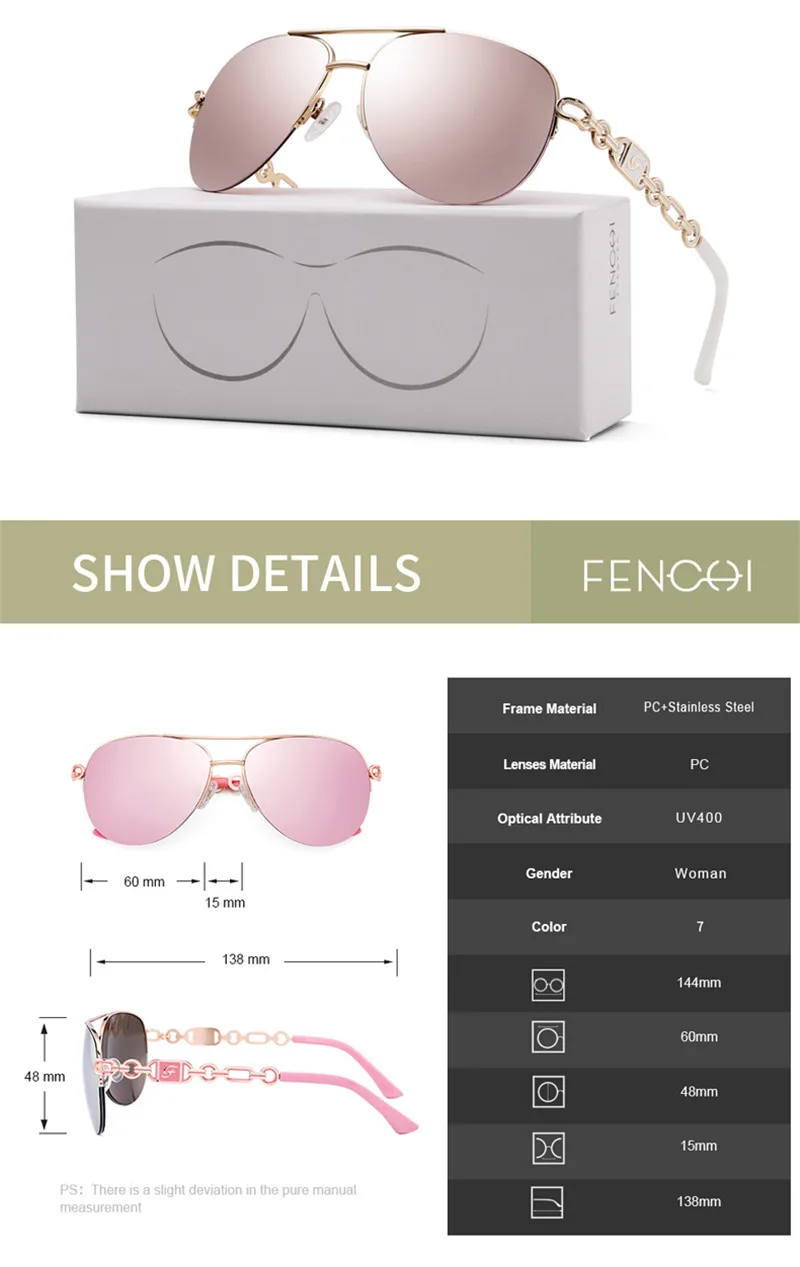 Солнцезащитные очки-авиаторы FENCHI поляризационные для мужчин и женщин, роскошные брендовые дизайнерские модные зеркальные розовые, женские очки Oculos De Sol