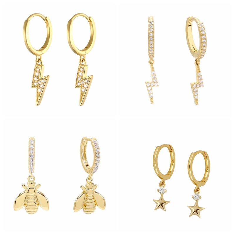 Женские серьги-кольца с Пчелкой, звездой и Луной