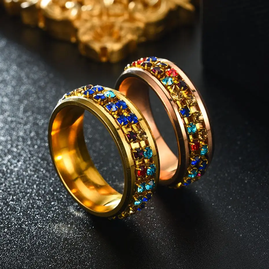 Новинка 2021, кольца из нержавеющей стали для женщин и мужчин, Черное золото, цветная Цепочка с кристаллами, вращающееся кольцо для пары, модные ювелирные изделия, трендовые подарки
