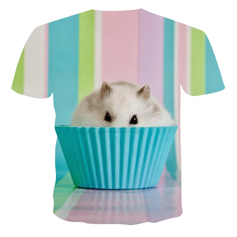 Новинка, милый и веселый хомяк с принтом 20213d, дышащая и удобная футболка из полиэстера для маленьких мальчиков и девочек