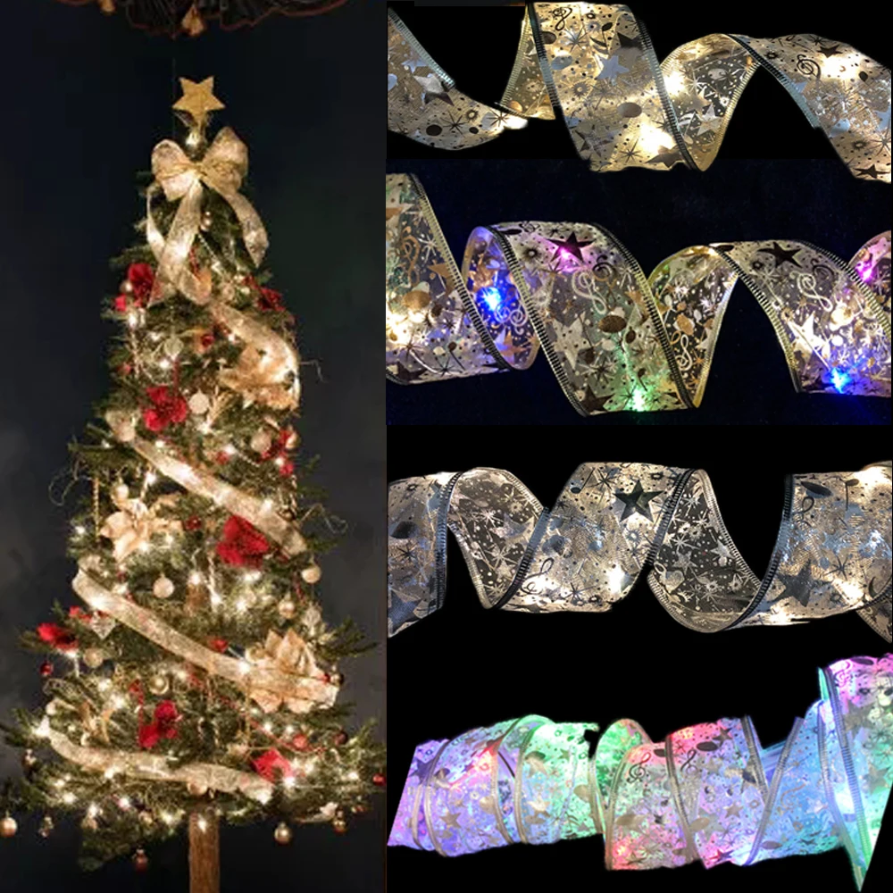 Двухслойные гирлянды 5 м10 м, рождественские ленты, банты со светодиодами, украшения для рождественской елки, новогодние и рождественские украшения для дома