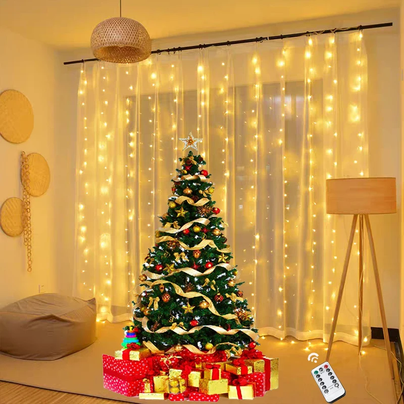2021, Новогодняя Рождественская гирлянда-занавеска, осветительная лампа для фотографий, рождественские подарки, декор для нового года